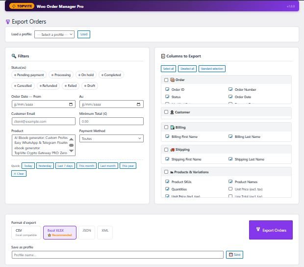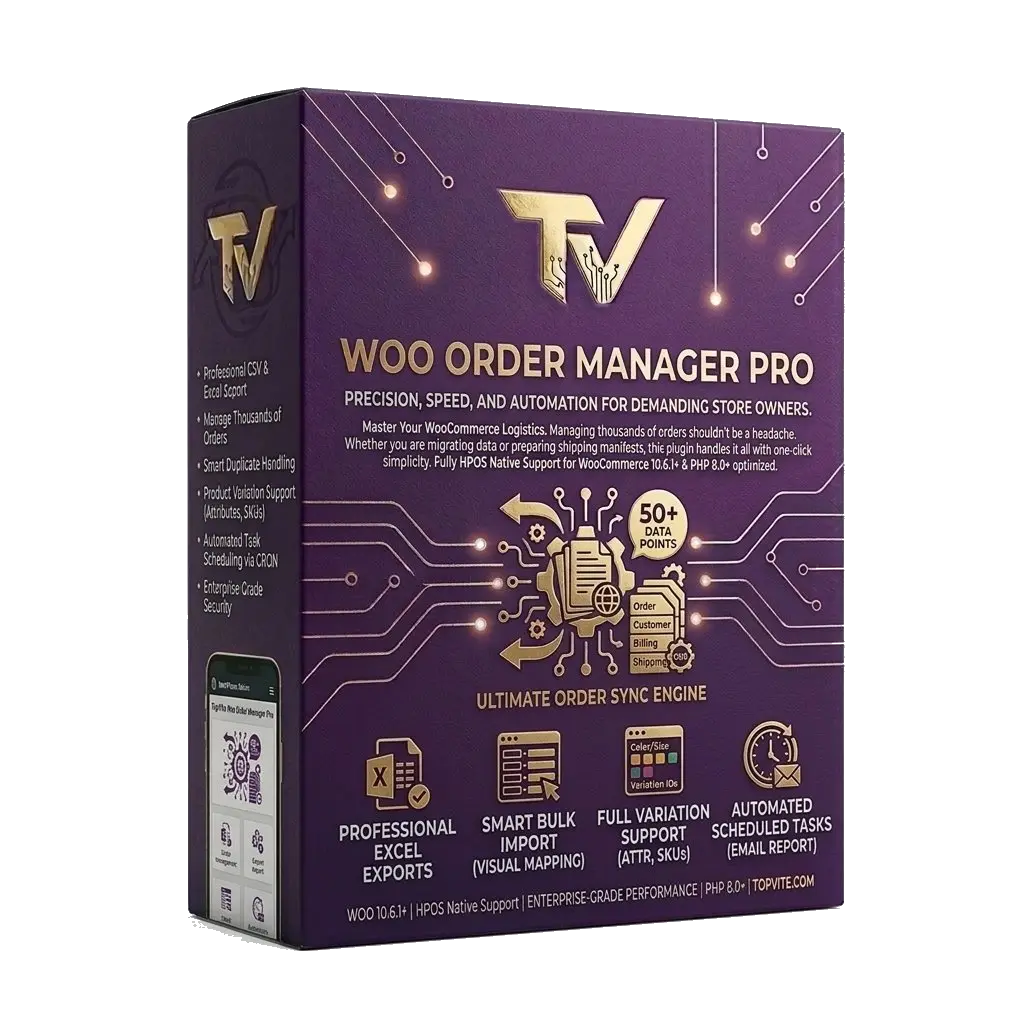 Managing thousands of orders shouldn’t be a headache. TopVite Woo Order Manager Pro is engineered for demanding store owners who need precision, speed, and automation. Whether you are migrating data or preparing shipping manifests, this plugin handles it all with one-click simplicity.